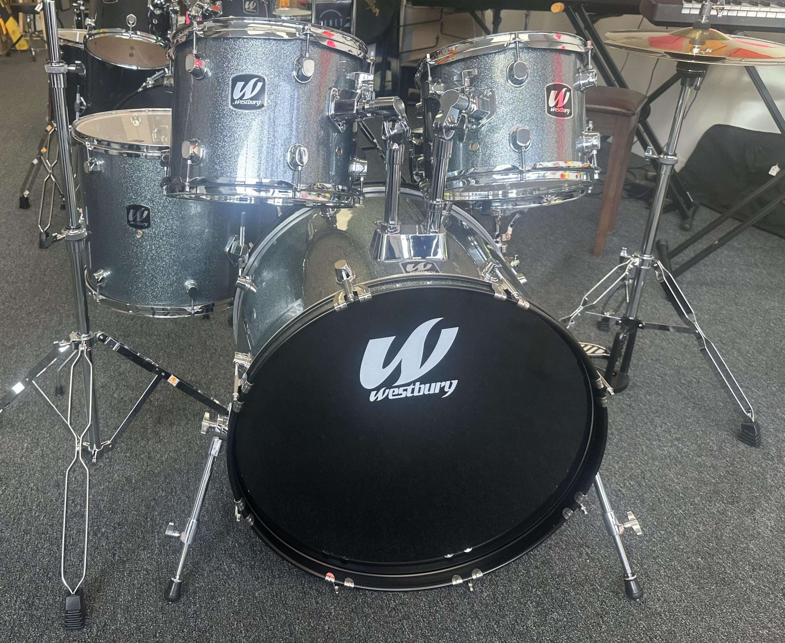 The Westbury Stage Drum Set features quality 9-ply shells with attractive PVC coverings. Solid double-braced hardware and sturdy 7/8 diameter tom holders and memory locks offer maximum support and durability, while power depth tom shells.